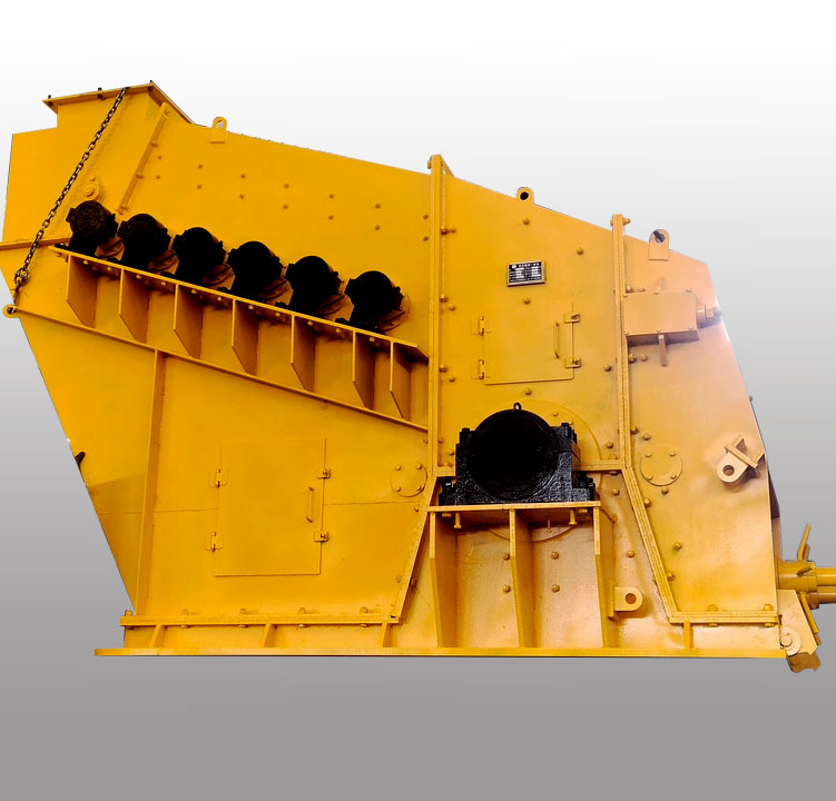 篩分破碎機設計特點是齒環(huán)與滾筒套環(huán)連接,兩輥相對運動,作用力與反作用力相等,徑向力平衡,故運行平穩(wěn),噪音小,振動小。